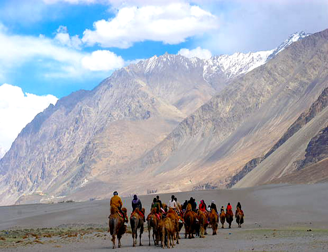 Day 3: After breakfast, prepare yourself for the ultimate adventure of your life. We will ride through the Khardungla Top to the magnificent Nubra valley. Visit the white sand dunes in Hundar and enjoy a ride of the exotic double-humped camel. Check in at your camp and if time permits, visit Deskit monastery in the evening. Dinner with discussion session. Overnight in Nubra Valley camps.